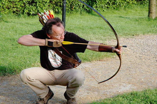 On sera même parfois accroupi pour tirer. Parce qu'un obstacle bas situé nous oblige à nous abaisser très nettement pour que notre flèche puisse passer ou parce qu'on en a envie....